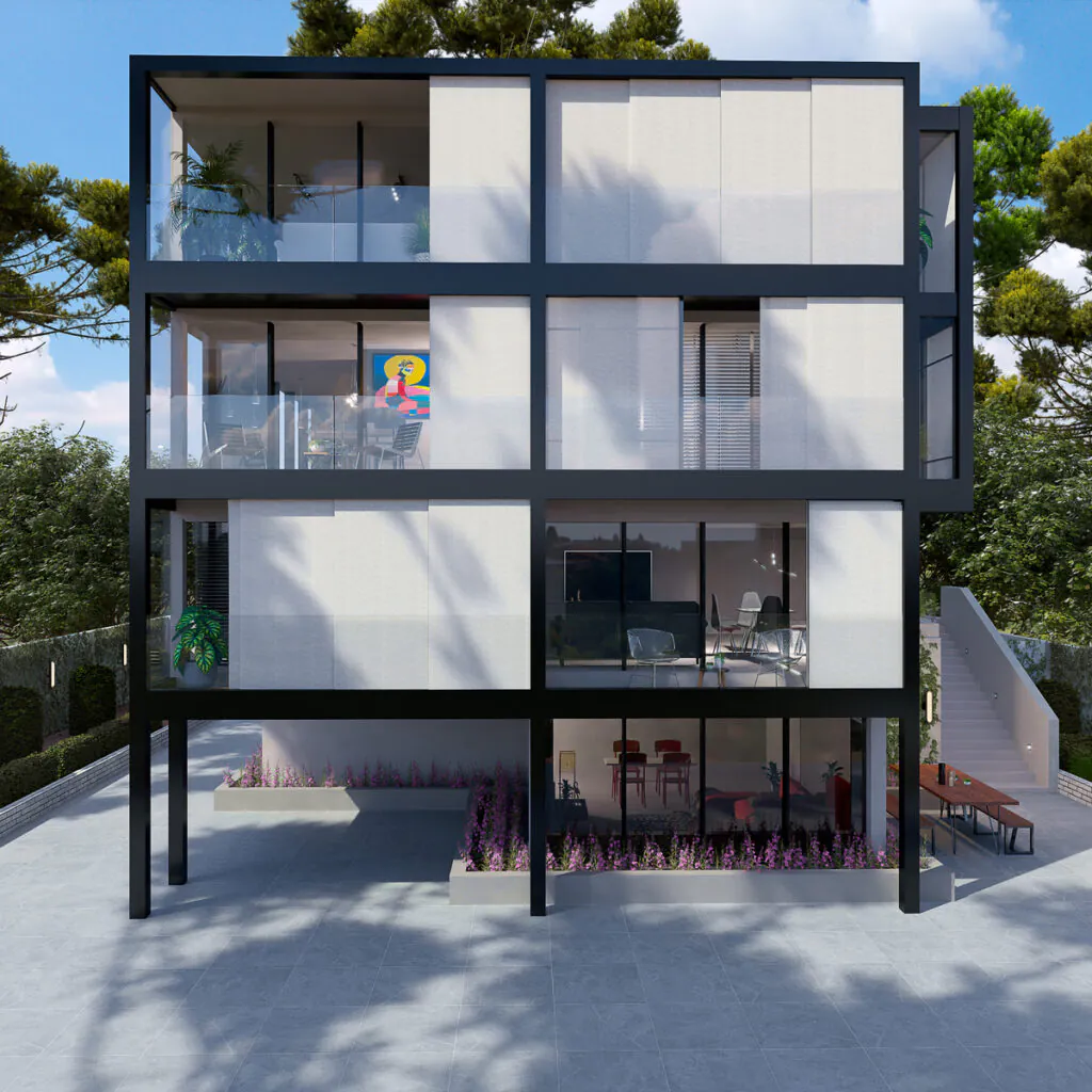 O Revesto revoluciona fachadas com arquitetura têxtil e ventilada. Ideal para novas obras ou retrofit, une estética, sustentabilidade e tecnologia. Seu sistema mantém o tecido tensionado mesmo após ventos e chuvas. Uma solução leve, precisa e de alto impacto visual.
