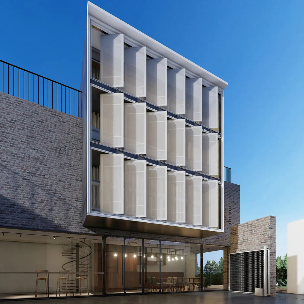 O Revesto Brise Camarão é a solução inteligente para fachadas móveis e sustentáveis. Ideal para retrofit ou novos projetos, combina arquitetura têxtil com alta performance. Com estrutura leve e resistente, seus painéis articulados garantem ventilação, proteção e destaque visual com montagem rápida e fácil.